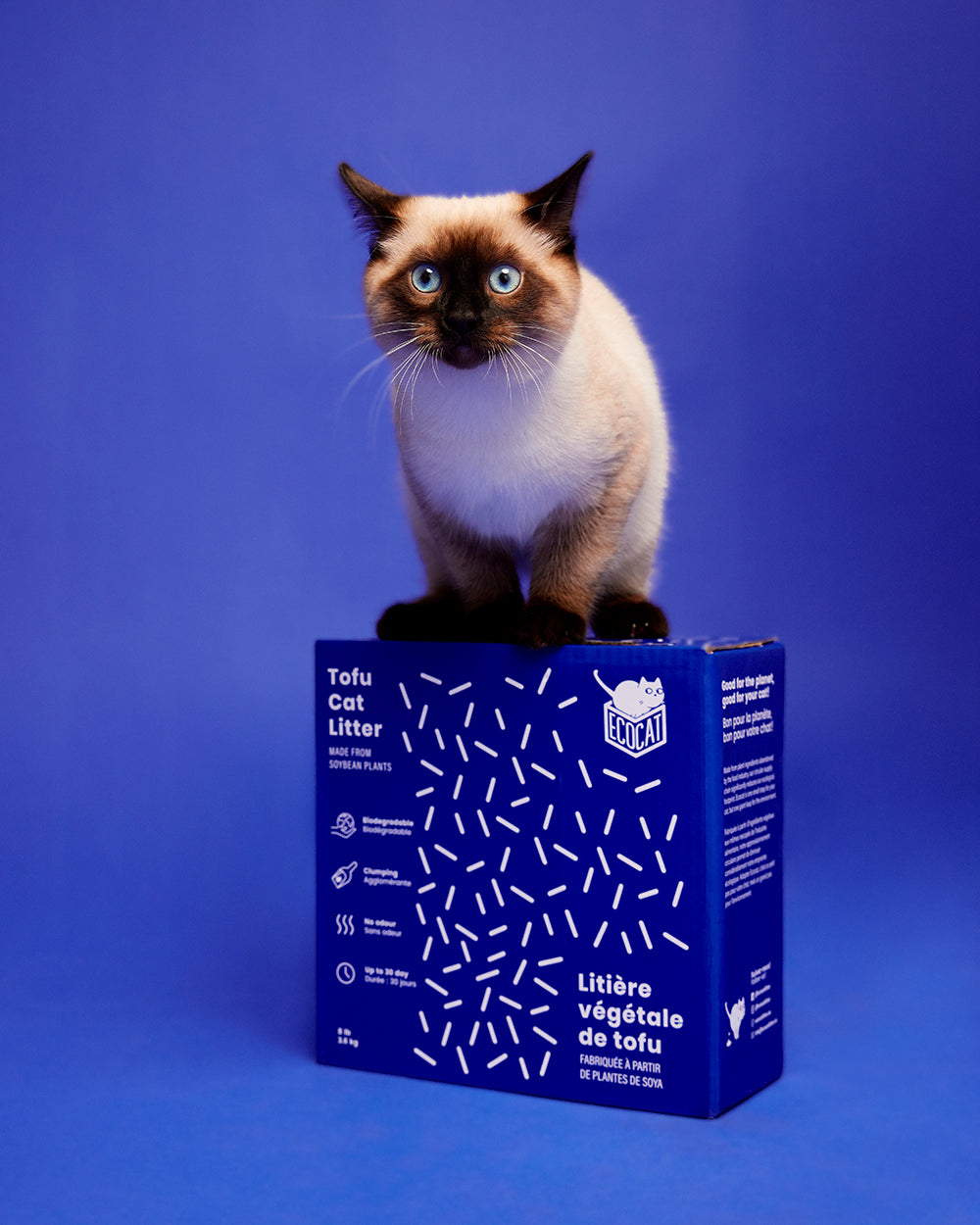 Notre litière est faite à base de fibres végétales recyclées qui sont issues des sous-produits de tofu et de pois vert non utilisés à la production destinée aux humains.